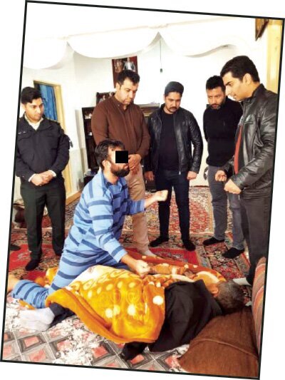 حدود ساعت ۵ بامداد بود که در خواب پتو را روی پیکر پدرم انداختیم و سپس طناب را به دور گلوی او بستیم. هر کدام یک سر طناب را گرفته و کشیدیم تا اینکه بیحرکت شد. بعد از آن و برای آنکه از مرگ او به طور کامل مطمئن شویم، همان طناب را از تیر چوبی سقف منزل آویزان کردیم و پدرمان را دار زدیم، ولی او حرکتی نداشت. این بود که جسد را پایین کشیدیم و به درون حمام بردیم تا سر فرصت چارهای برای آن بیندیشیم. روز بعد جسد را پلاستیکپیچ کردیم و با وانت پدرم را به محل کشف جسد بردیم تا وانمود کنیم به خاطر رفت و آمدهایش به مشهد احتمالا کسی او را کشته است. خودرو را هم چند روز به پارکینگ منزل یکی از دوستان پدرم بردیم چراکه همیشه خودرو را در منزل دوستش میگذاشت.
