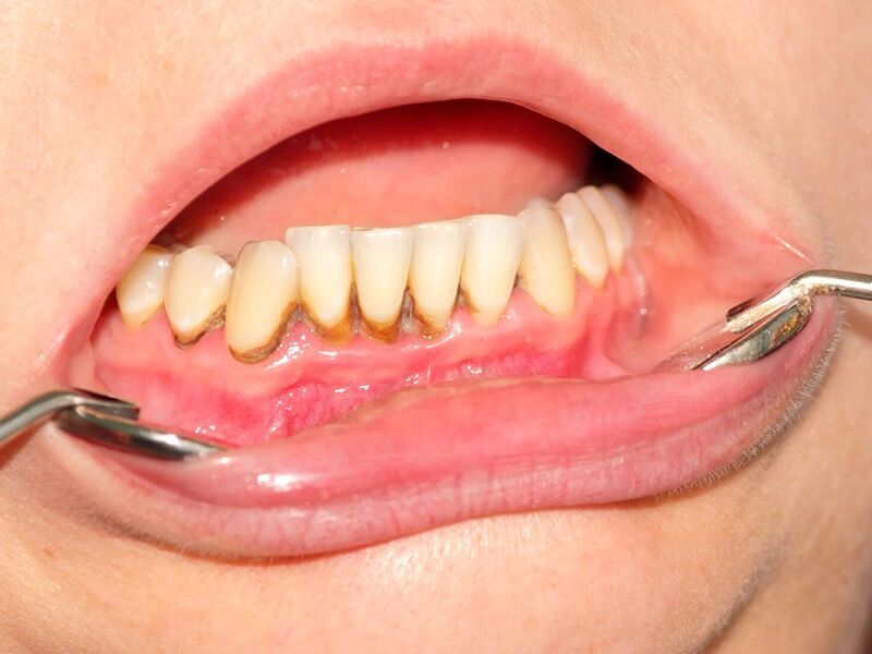 عفونت لثه: تجمع باکتریها در اطراف خط لثه، خطر التهاب، خونریزی و عفونت را افزایش میدهد. با ادامه این روند، عفونت به بافتهای عمقیتر لثه سرایت کرده و موجب تحلیل استخوان فک و بافتهای نگهدارنده دندان میشود.