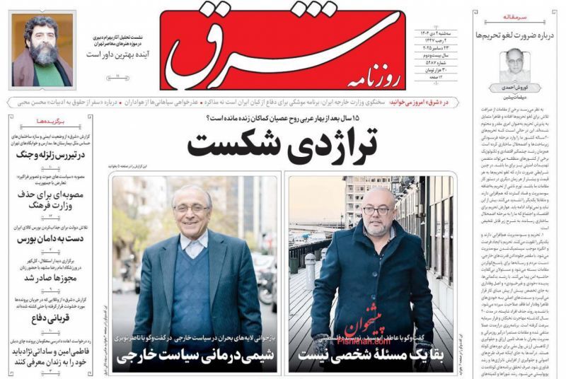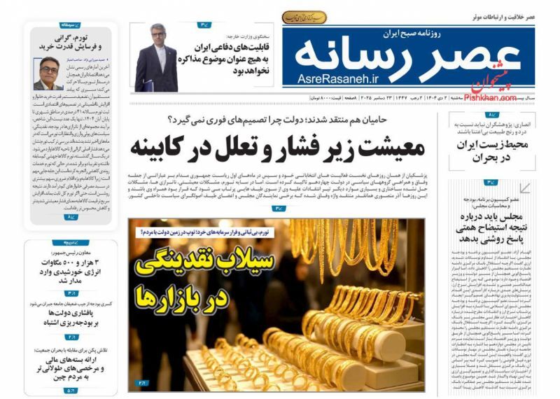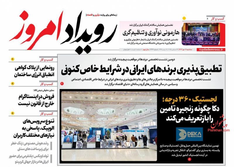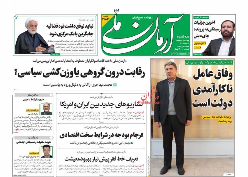 پیشخوان روزنامه های آرمان امروز، آرمان میهن، ابرار، خراسان، جوان، کیهان، یادگار امروز، اترک، آرمان ملی ،دنیای اقتصاد، افکار، امروز، تجارت، اقتصاد ملی، جهان صنعت و ... را مشاهده می نمایید