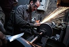پشت شیشه این کلمات به چشم خورد: «از تیز کردن قمه معذوریم. لطفاًسؤال نفرمایید.» آن‌سوتر هم قیمت خدمات نوشته‌شده؛ یک فهرست بلندبالا از تیز کردن کارد قصابی که 5 هزار تومان است تا قیچی چمن‌زنی که 4 هزار تومن آب می‌خورد و کلی اقلام تیز کردنی دیگر. توی کارگاه هم تا دلت بخواهد بر درودیوار چاقو و اره و ابزارهای کار و سنگ صیقل به چشم می‌خورد. یک پروانه قدیمی کار هم هست. لابد از سال 1317. جوان‌ها با انگیزه و تند تند کار می‌کنند.همان‌ها که قرار است این کار و پیشه را حفظ کنند.
